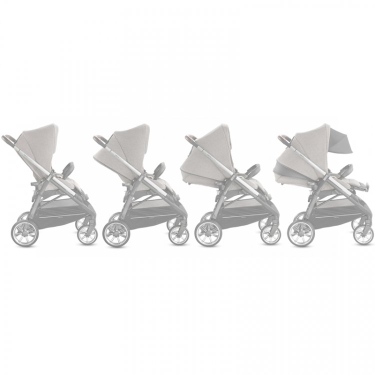 The stroller has a generous, structured and deep seat which can be used for toddlers up to 22 kg in weight (approximately 4 years of age). It is reversible and folds up with the chassis with just one hand, both forward facing and rear facing.