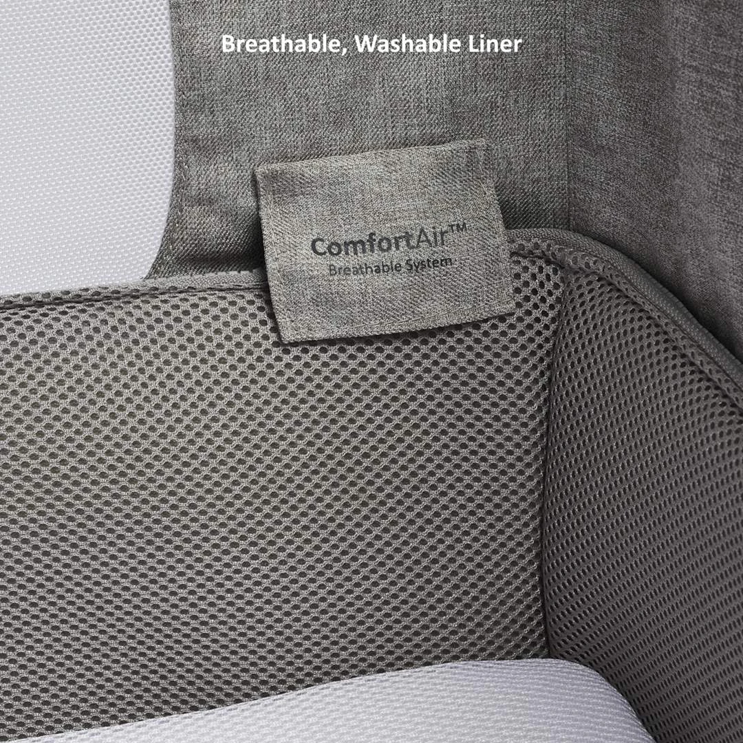 Transform your nursery into a dreamy haven with the Snuzpod4 Bedsdie Crib, complemented by the Snuzpod Waterproof Mattress Protector and two Snuz Pack Fitted Sheets for a blissful night’s sleep.